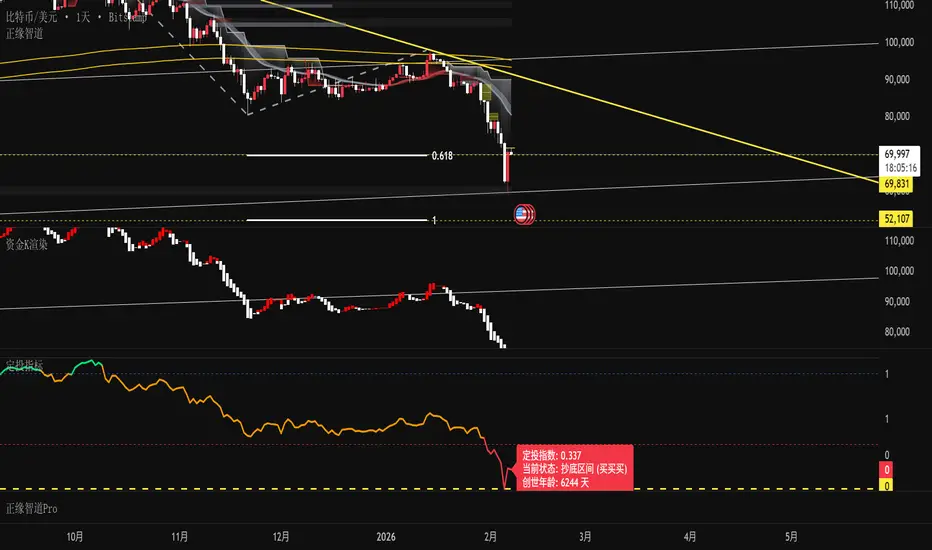 智能状态面板:图表左侧实时显示当前指标读数、抄底/逃顶状态以及资产的精确“年龄”。