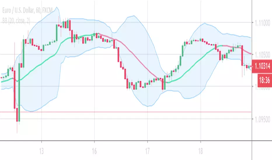 Original Bollinger Bands but the basis line changes color when the slope is positive or negative