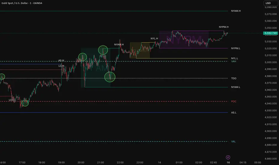 A session-driven volume profile built to visualize auction behavior, liquidity distribution, and key reference levels such as POC, VAH, VAL, and True Day Open.