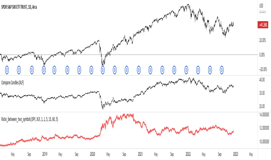 This script plots the ratio of two symbols to show the relative strength between in order to determine which is the stronger security