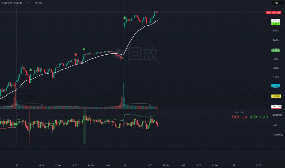 · This aligns the ADD trend volatility with the TICK range, allowing you to instantly spot divergences or resonance between sentiment and trend.