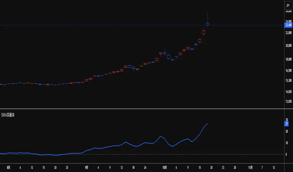 This script plots the percentage distance between the current price and a Simple Moving Average (SMA) as a line in a separate sub-window (not on the main chart).