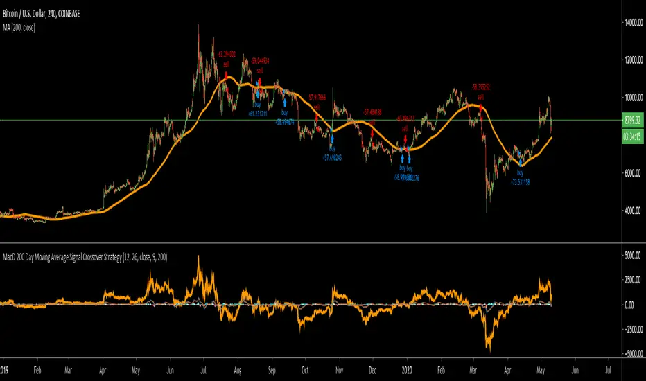 MacD 200 Day Moving Average Signal Crossover Strategy