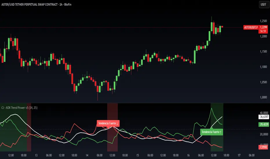 This indicator highlights when the market enters a strong trend phase using ADX together with +DI and –DI.