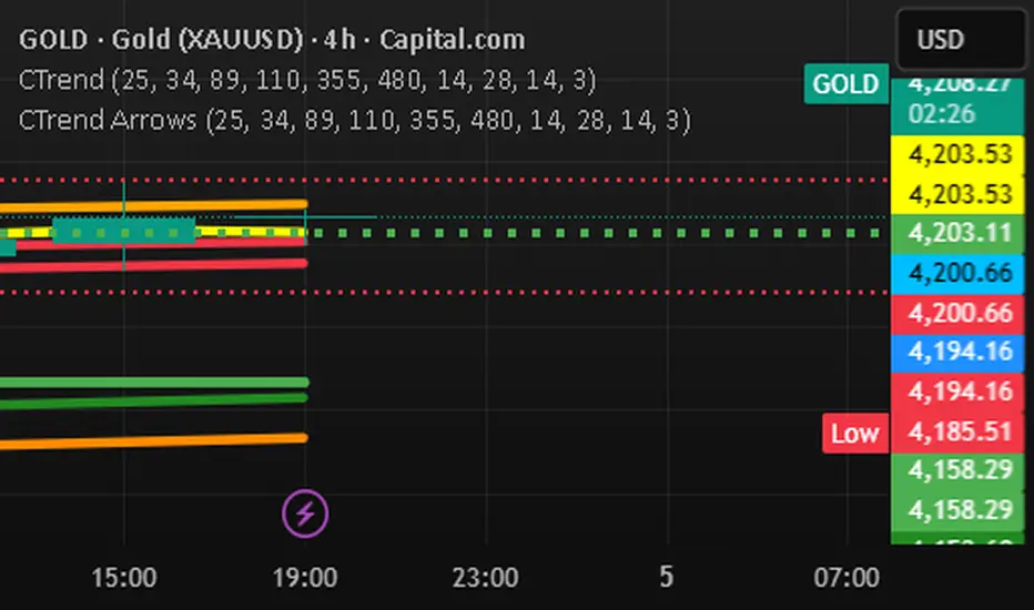 this trading indicator uses the following parameters EMA LOW (25 34 89 110 355 and 480) SMA(14 and 28) and Supertrend(14 3) for trading analysis and BUY/SELL Signals when the trade aligns.
