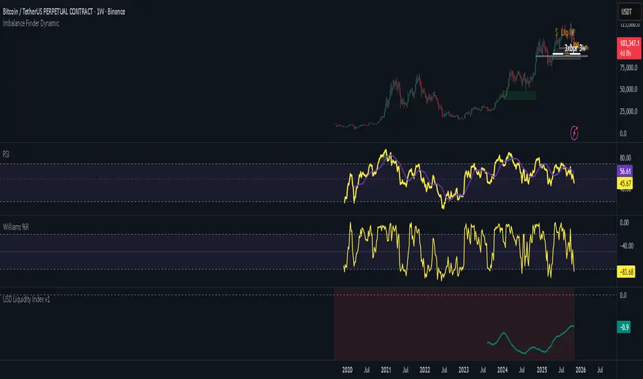 The *Core USD Liquidity Index* tracks global **USD liquidity conditions**, the single most important macro driver behind risk-on and risk-off environments.
