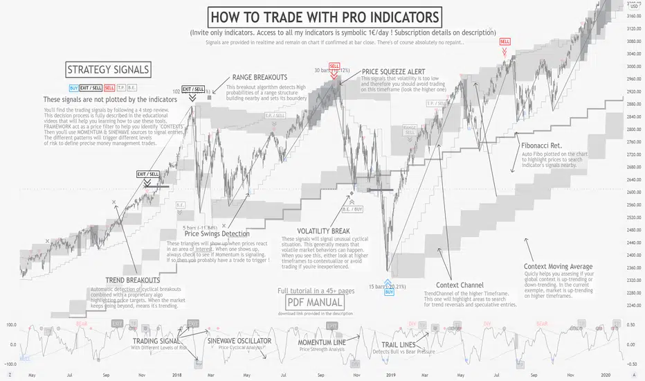 Even if we provide automated momentum signal detection, there is no “one-click” or "easy-win” solution, the user still needs to carefully review the elements. When applicable pattern rules are confirmed, the user will gather risk-limitation information from both indicators (breakout targets, price confirmations, momentum and cyclical coordination) and decide whether or not to trade according to its own risk profile. If so, the position sizing, stop-loss positioning, risk management and profit targets will all be defined according to the same indicator’s outputs. This effectively suppresses most behavioral and personal biases the trader could introduce, creating a stable and statistical risk management structure aiming for a durable profitability.