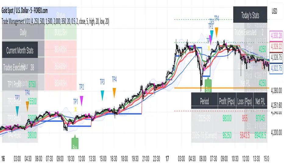This powerful tool seamlessly integrates a multi-timeframe trend analysis engine with a complete trade and performance management system, displaying everything you need in a clean, intuitive interface directly on your chart. It's built to help you stay on the right side of the market, make informed decisions, and manage your trades from entry to exit with precision.