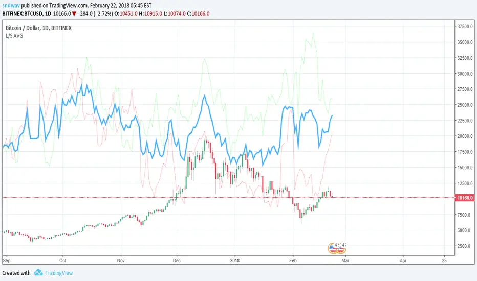This indicator takes Bitfinex's SHORTS and LONGS charts, and overlays the Average of the 2 on top of the current chart.