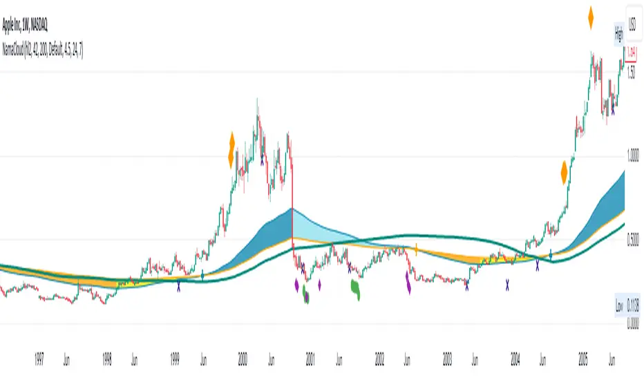 Application of Non-Adaptive Moving Average (NAMA) by using a fast and slow MAs to draw a trending cloud.