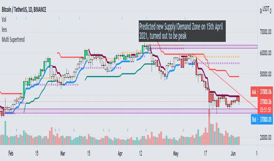 The additional Supertrend is non-repaint type and can run on higher timeframes.