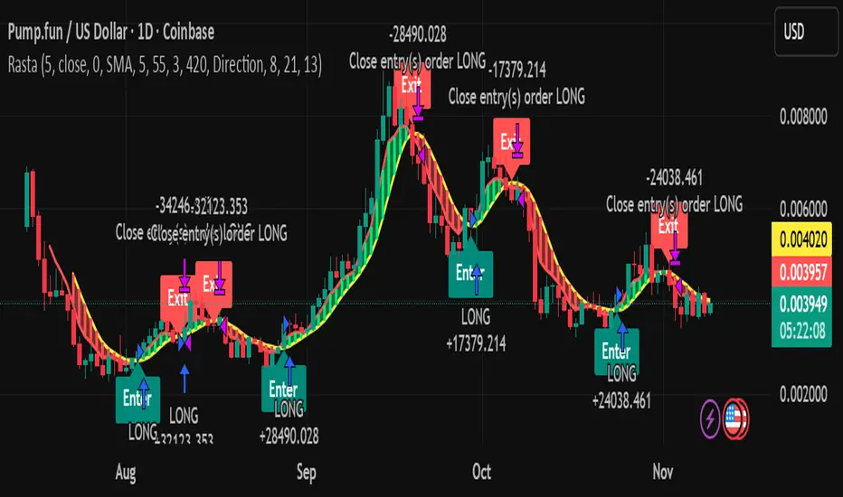 The Rasta Strategy is a visual and educational framework designed to help traders study momentum transitions using the interaction between a fast-reacting EMA line and a slower smoothed reference line.