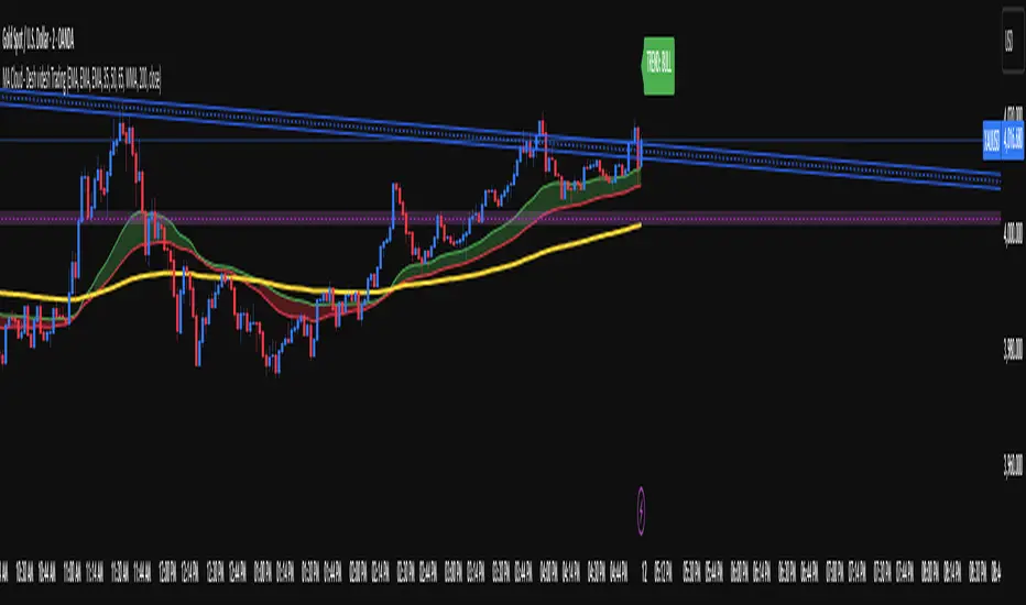 Visualize market trends with ease using the MA Cloud + Configurable Long-Term MA indicator! This tool allows traders to quickly assess short-to-medium-term and long-term trends using customizable moving averages (EMA, WMA, SMA).
