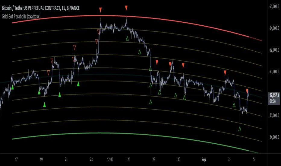 At the core of the Parabolic Grid Bot lies the parabolic function, which calculates a dynamic curve that adapts to price action over time. This curve serves as the foundation for visualizing potential support and resistance levels.
