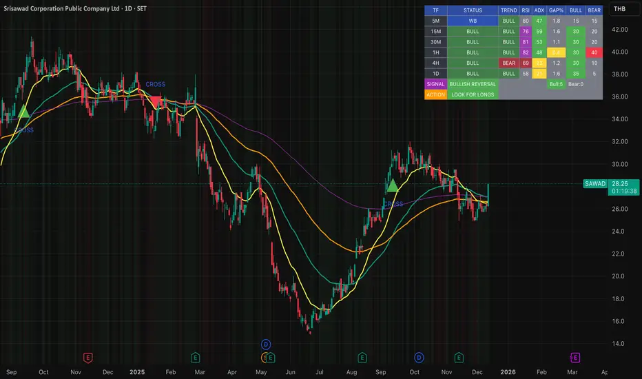 Displays: Trend direction, RSI, ADX, EMA Gap %, Bull/Bear scores