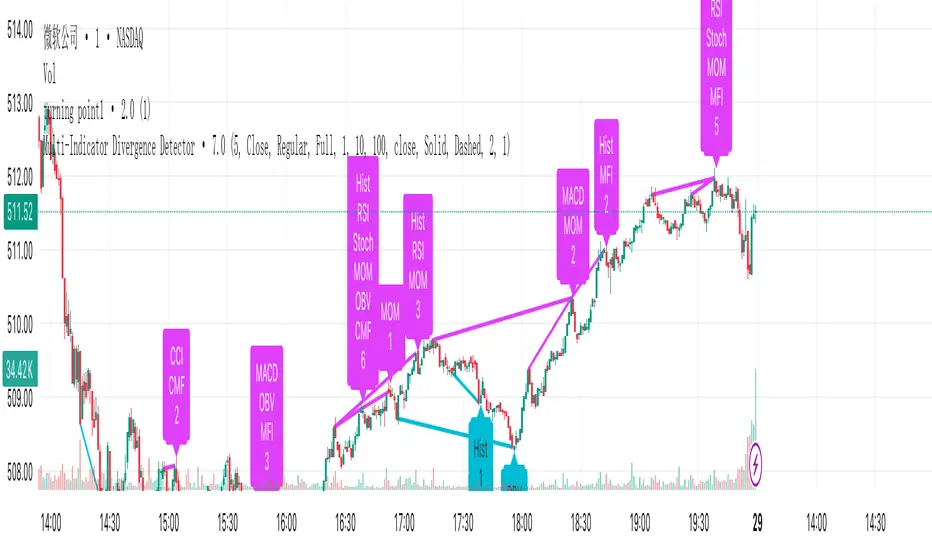 Multi-Indicator Support: Simultaneously detect divergences across multiple indicators, including MACD, RSI, Stochastics, CCI, Momentum, OBV, VW-MACD, CMF, and MFI.