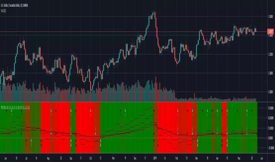 The Super TSI takes 4 measures the strength in 4 different timeframes. It's designed to be used on either a Weekly, Daily, 4HR, or 1HR chart.