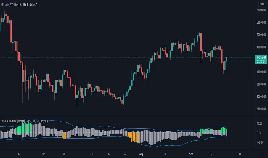 This indicator is based on CM_Williams_Vix_Fix Finds Market Bottoms and its great difference is that it adds the inverse functionality, also showing the possible highest areas of the market.