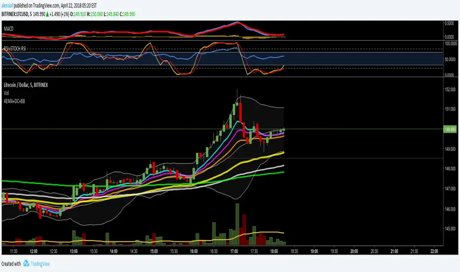 Check out my other script for 4EMA + Death Cross + Bollinger Bands all in one.