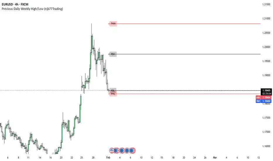 Simply charts Previous Daily/Weekly High-Low levels