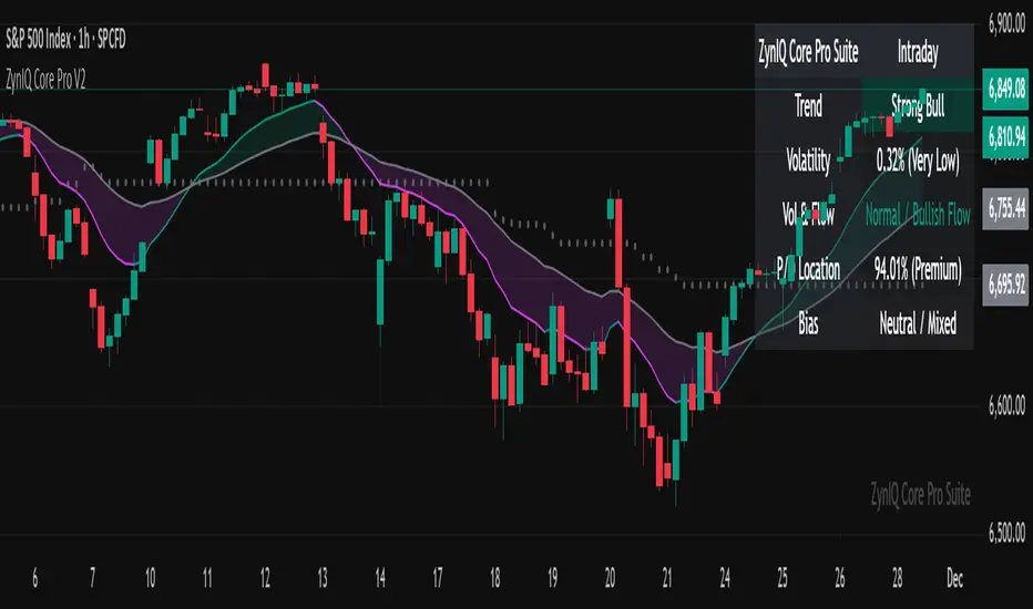 ZynIQ Breakout Core Pro Suite v2 is an advanced breakout engine designed to analyse compression, expansion and directional bias with high precision. It incorporates multi-factor filtering, adaptive volatility logic and refined breakout mapping to highlight moments where the market transitions from contraction to expansion.
