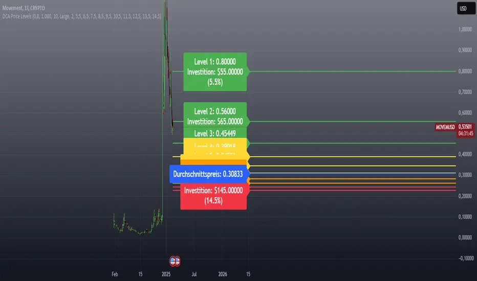 Whenever the price falls from the current DCA price to minus 30 percent, a new price target is set.