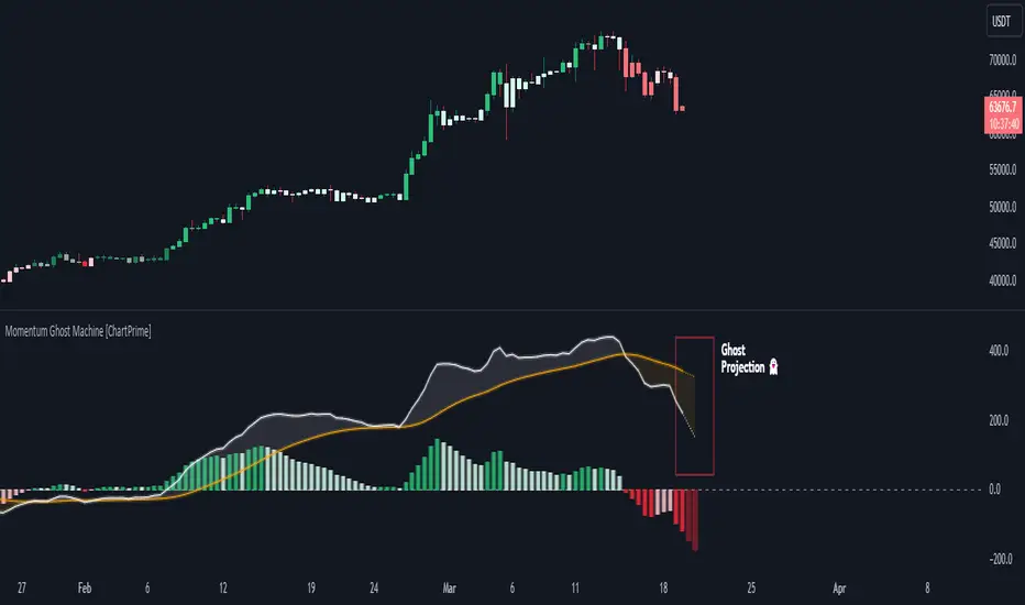 Momentum Ghost Machine (ChartPrime) is designed to be the next generation in momentum/rate of change analysis. This indicator utilizes the properties of one of our favorite filters to create a more accurate and stable momentum oscillator by using a high quality filtered delayed signal to do the momentum comparison.