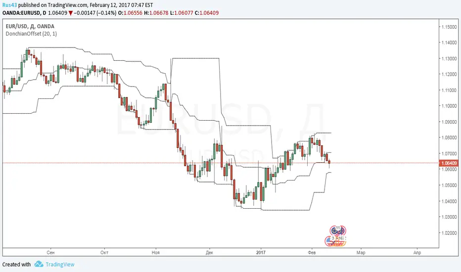 Канал Дончиана с регулируемым сдвигом, он же Price Channel. Для тех кто любит стратегию черпах, черпаховый суп и для поклонников комплексного анализа фибоначчи Першикова.