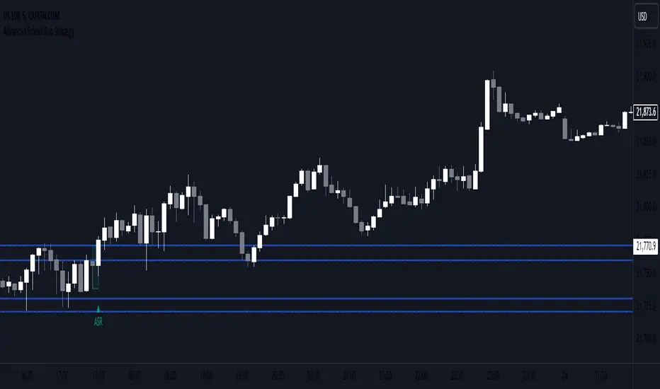 Overview: The Advanced School Run Strategy (ASRS) is an intraday trading approach designed to identify breakout opportunities based on specific time and price patterns. This script applies the concepts of the Advanced School Run Strategy as outlined in Tom Hougaard's research, adapted to work seamlessly on TradingView charts. It leverages 5-minute candlestick data to set actionable breakout levels and provides traders with visual cues and alerts to make informed decisions.