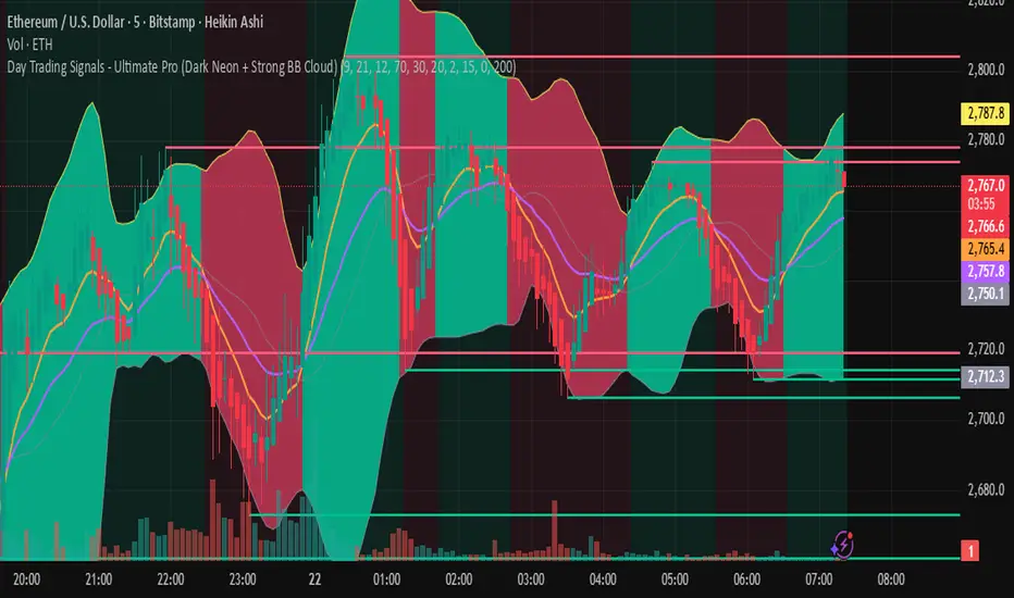 Day Trading Signals - Ultimate Pro (Dark Neon + Strong BB Cloud)