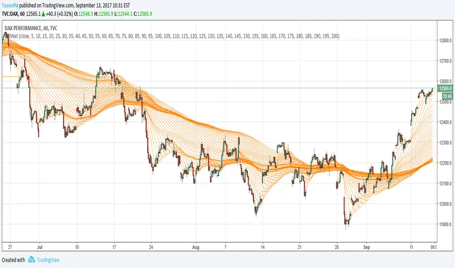 Moving averages 1-200 that create this FishNet pattern. Works well on all timeframes and together they form resistens and support levels.