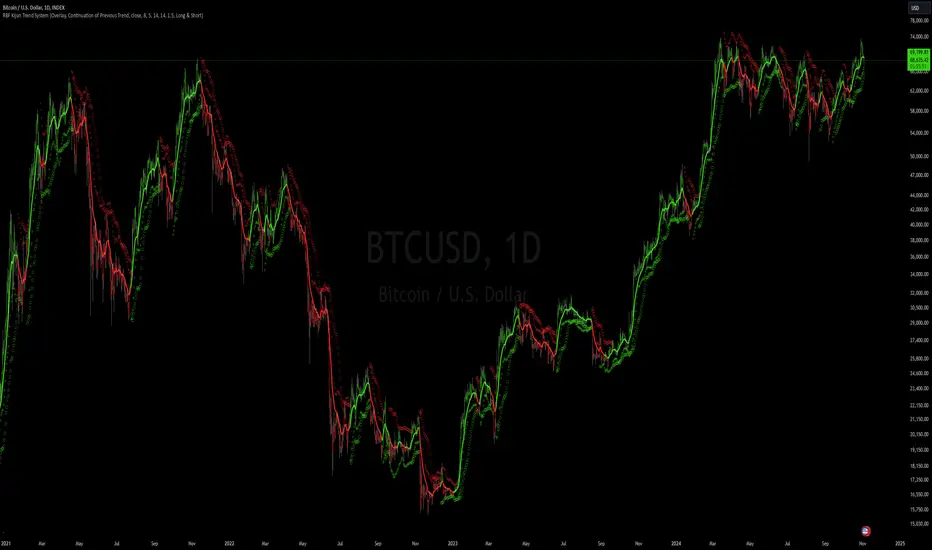 The RBF Kijun Trend System utilizes advanced mathematical techniques, including the Radial Basis Function (RBF) kernel and Kijun-Sen calculations, to provide traders with a smoother trend-following experience and reduce the impact of noise in price data. This indicator also incorporates ATR to dynamically adjust smoothing and further minimize false signals.