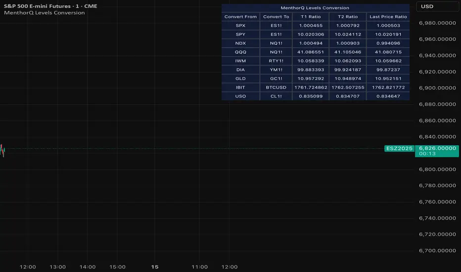 This script calculates the ratio between Asset A and Asset B and applies it to convert levels from one instrument to the other (for example, SPX → ES, QQQ → NQ).