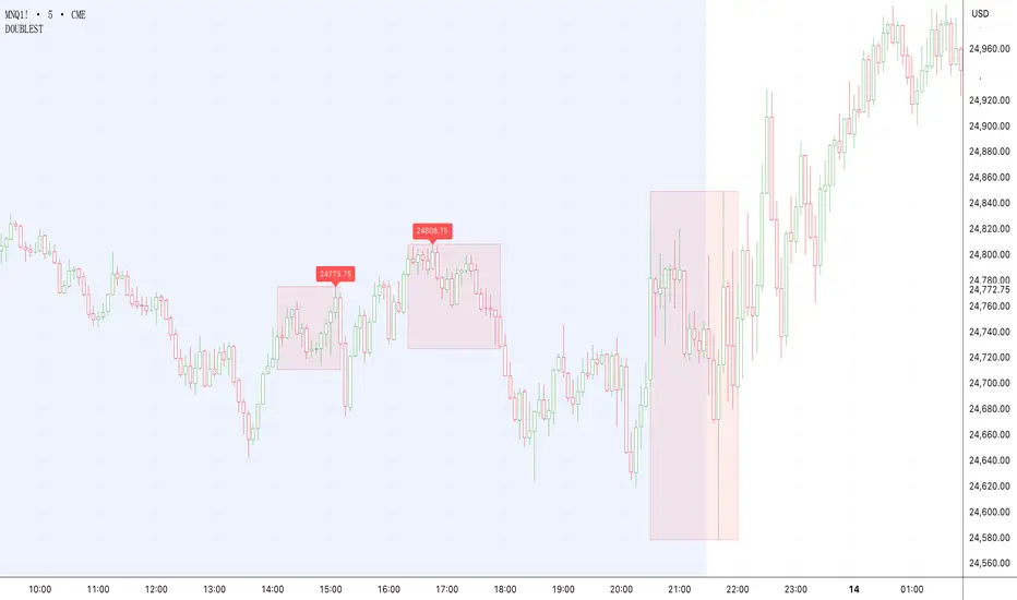 本指标基于双 SuperTrend 结构构建,通过大周期趋势方向与小周期波动节奏的配合,辅助识别趋势中的回调入场机会。