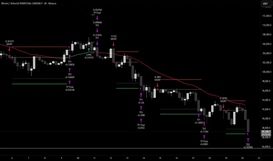 **Green Lines** = Take profit levels (TP1, TP2, Final)