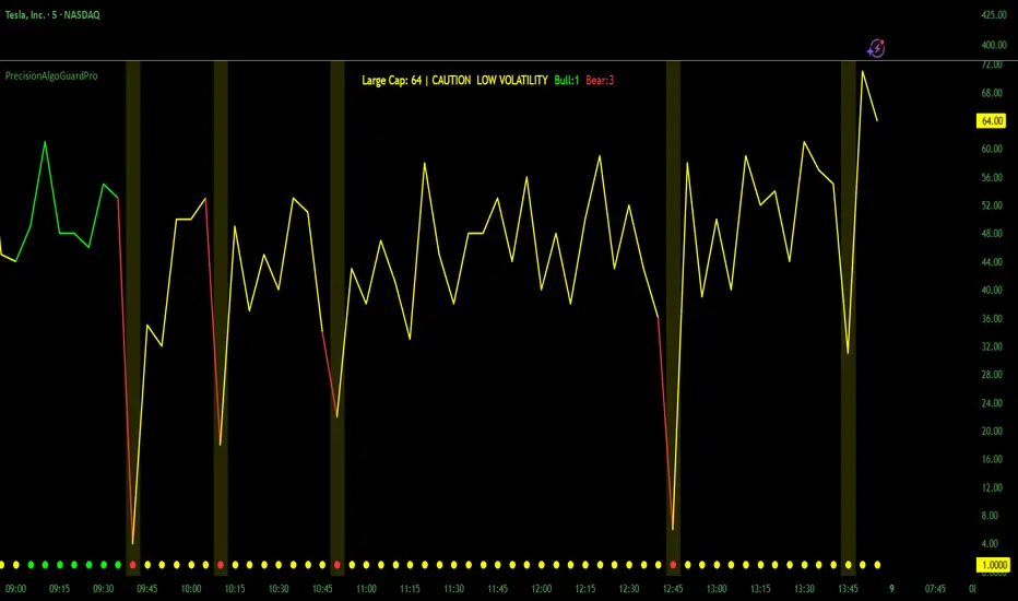 PrecisionAlgoGuard is a real-time market quality and trap detection engine that answers one question before every trade: are conditions safe to trade right now? Most indicators tell you where to enter. PrecisionAlgoGuard tells you whether you should be trading at all — and if so, which direction the environment favors.