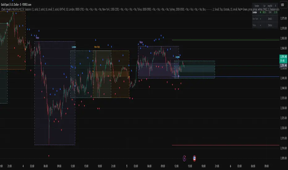 Daily Weekly Monthly HLC + Session (perfect)Skrypt open-source