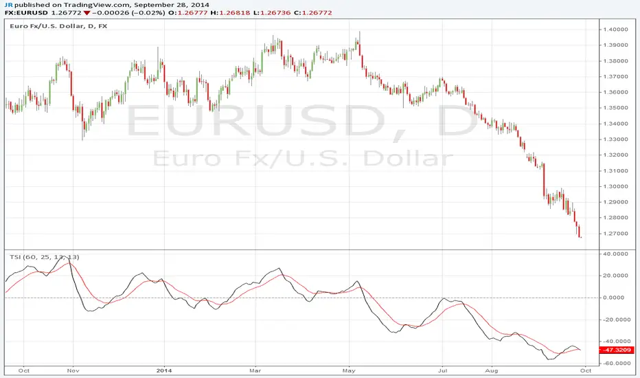 Chart below compares FX EURUSD Daily TSI to 1H TSI