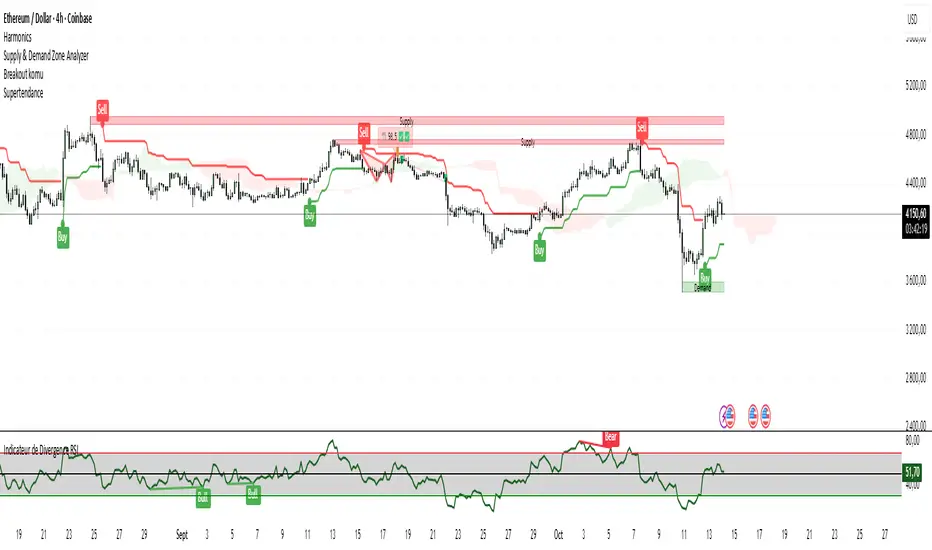 This indicator automatically identifies and draws key supply and demand zones on a chart, highlighting where institutional buying or selling pressure has historically acted. It also monitors zones for breaks (i.e. when price decisively crosses through a zone) and changes their status or appearance accordingly.
