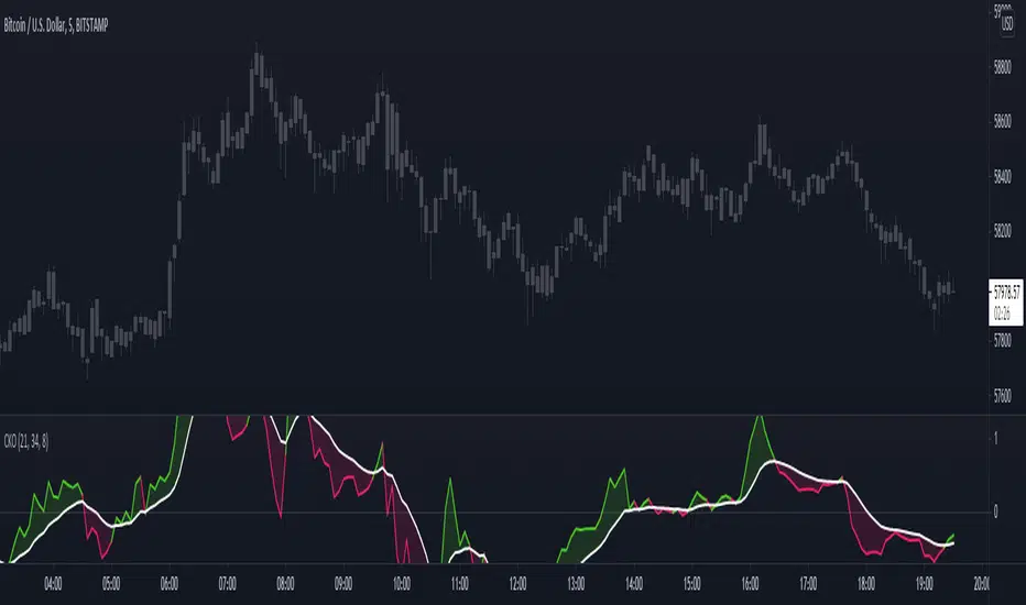 This indicator adds conditional coloring of the Klinger line when over / under the signal along with a transparent fill cloud between both lines colored by the same condition. You can change colors to your preference on the style configurations.