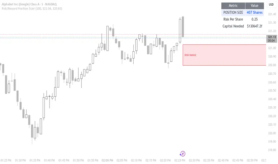 With this position calculator, set an entry, stop loss, and dollar amount you'd like to risk. The indicator will automatically calculate how many shares your position should be to risk your chosen dollar amount. Additionally, the total amount of capital required will be calculated so you can verify you have enough available margin to enter your position. Works for long or short positions.