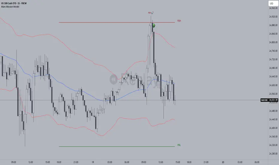 Identifies Fair Value Gaps (FVGs) during the New York AM session (8-11 AM EST) that form outside Bollinger Bands, then tracks Previous Day High/Low liquidity sweeps to generate inverse FVG signals when conditions align.