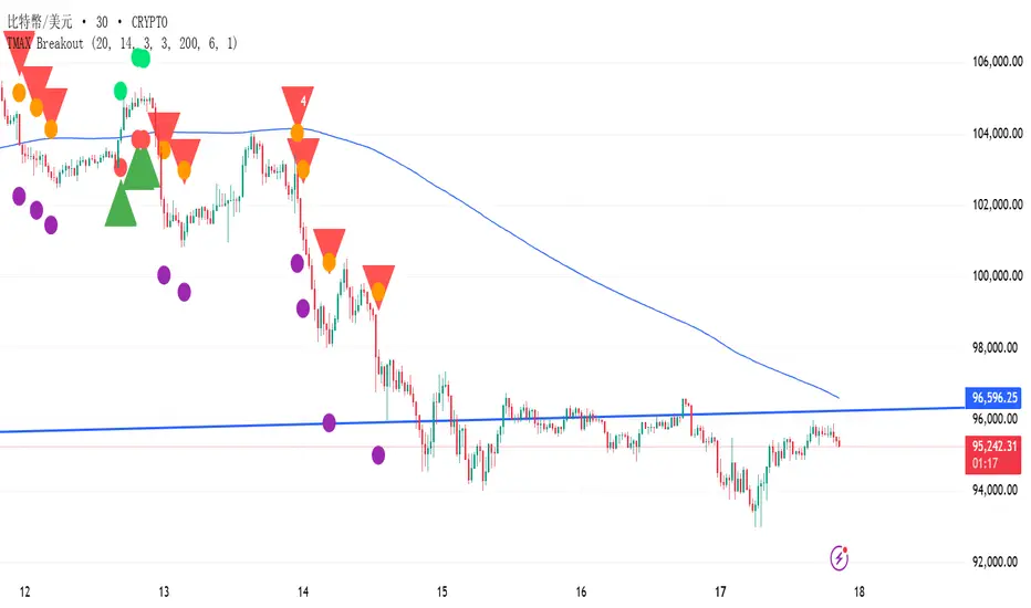 TMAX Breakout 是一款基於海龜交易法(Turtle System)延伸打造的趨勢突破指標,由 EricFreeman 設計。