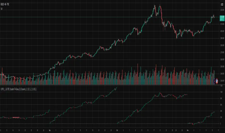 Dual CVD & Divergence Engine: The indicator calculates two CVPDs: a Periodic one (for plotting) and a Continuous one (non-resetting). The continuous line is used as a stable source for the built-in divergence engine (detecting Regular, Hidden, and Exaggerated).