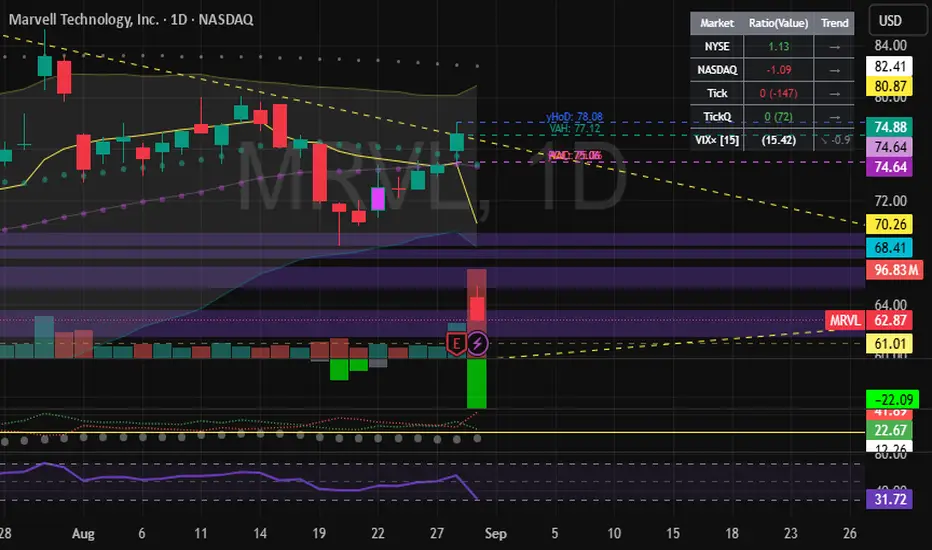 * Example: Price rejects **VAH** while **VOLD slopes** roll negative and VIX ↗ — consider fade/reversal.