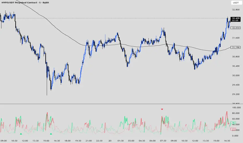On top of the lines, the script can draw arrows and fire alerts when several conditions align: