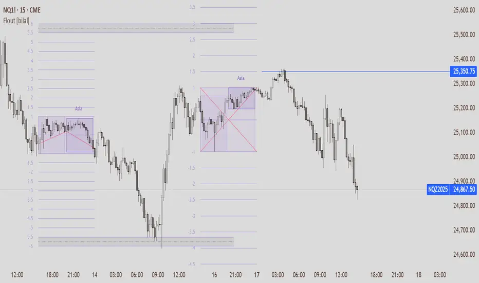 Automatically draws FLOUT, CBDR, and ASIA session ranges with standard deviation levels and highlight zones. Perfect for ICT-style trading and session-based strategies.