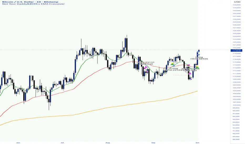 "EMA Cross Exit": Trend-following, lets winners run until EMAs reverse