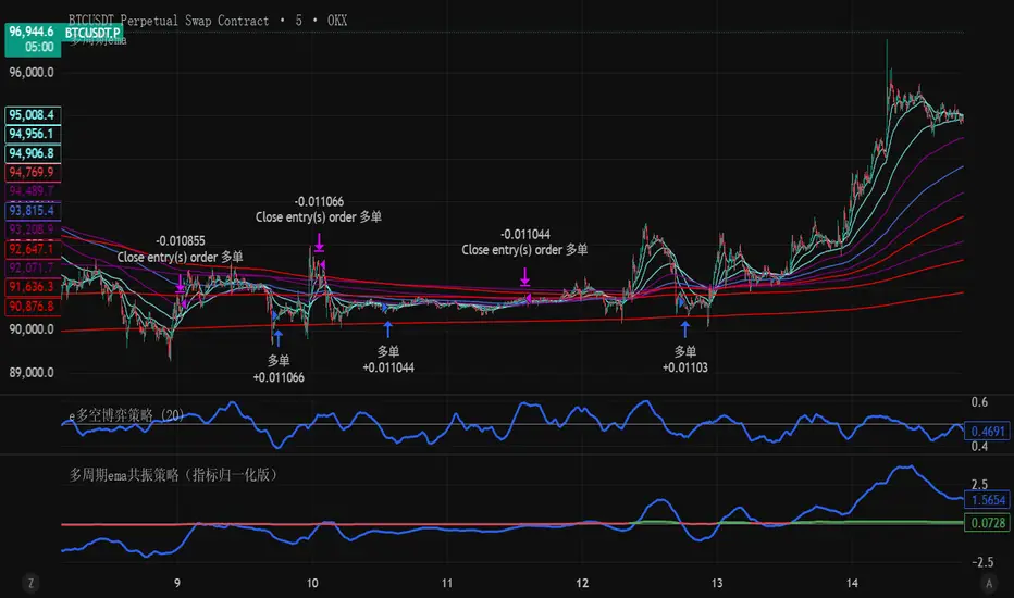 10-level EMA cross-period resonance, accurately capturing trend ignition points and outperforming single-period strategies by far. K-line bull-bear power weighting filters out 90% of oscillating noise, leading to a sharp surge in signal win rate. Historical backtesting yields an outstanding win rate. Strict position control is required for live trading. This does not constitute investment advice.