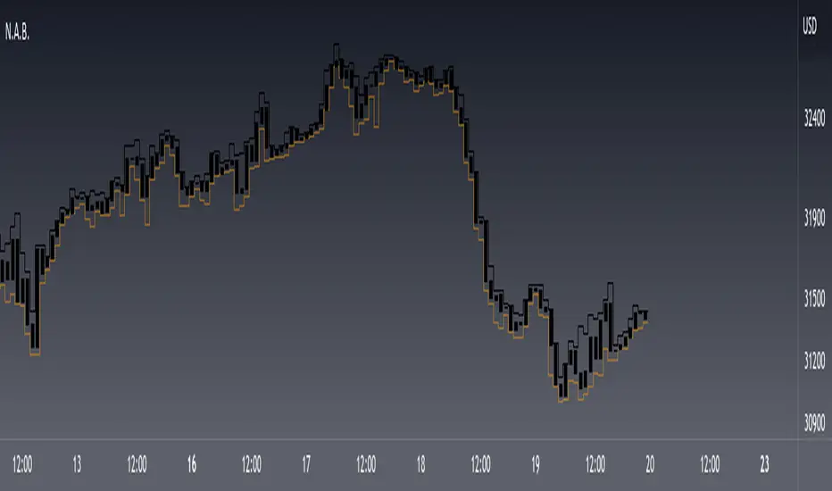 That's it! Instead of wicks the High & Low prices are plotted above and below the candles using a step line. It looks a bit strange at first but you'll get used to it. Check out the indicator settings to change the color and style of the High & Low lines.
